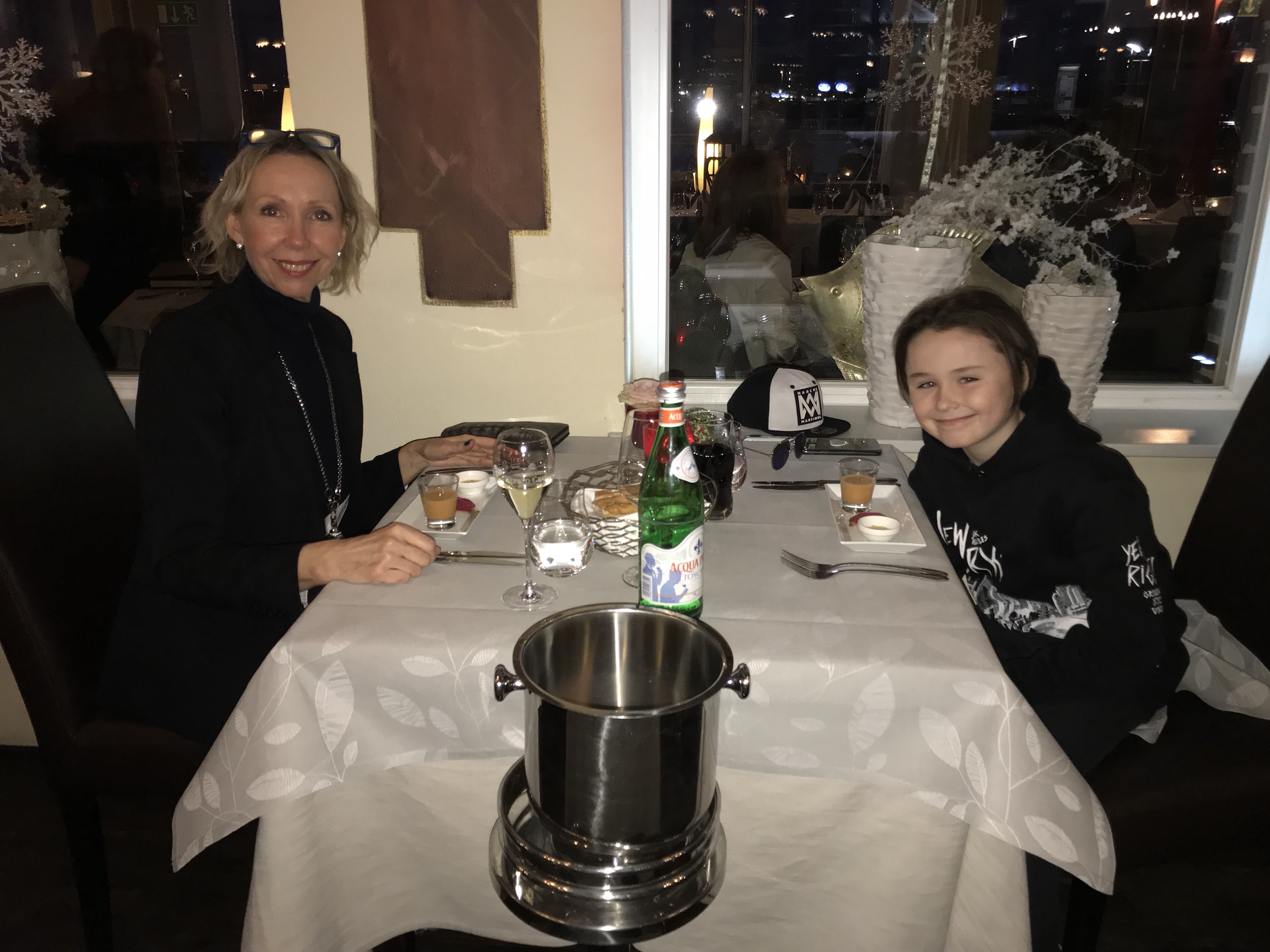 Afterwards, we picked Olivia up outside the school dance, and went back to the hotel. We then visit the bar connected to the restaurant drinking cola and eating divine dolce.